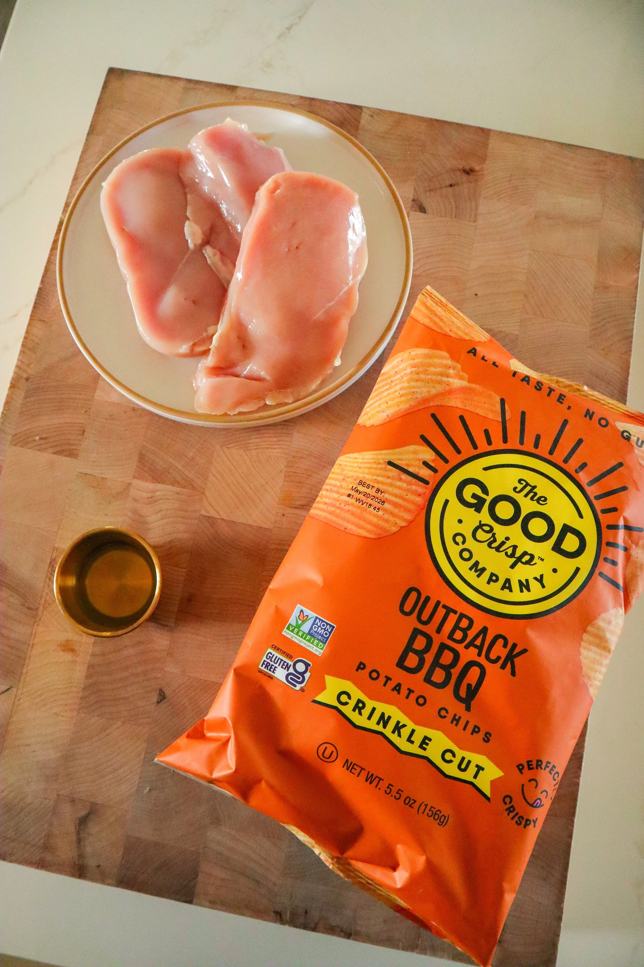This is one of those back-pocket recipes you can make without a grocery list a mile long. All you need is chicken breast, crushed BBQ potato chips, and a quick spray of oil. That’s it.