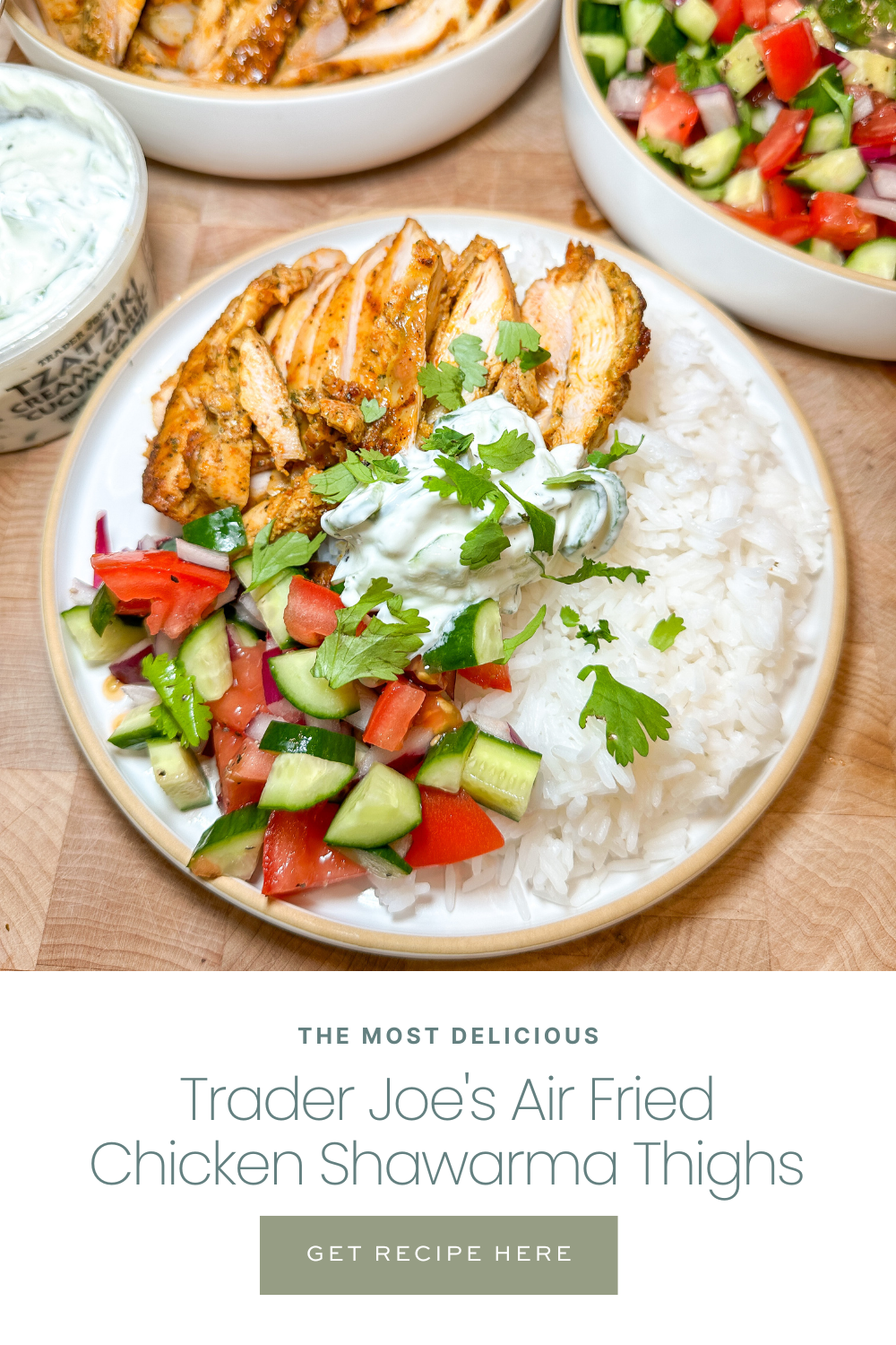 Trader Joe’s Tzatziki creamy garlic cucumber dip: pairs perfectly with this chicken shawarma!