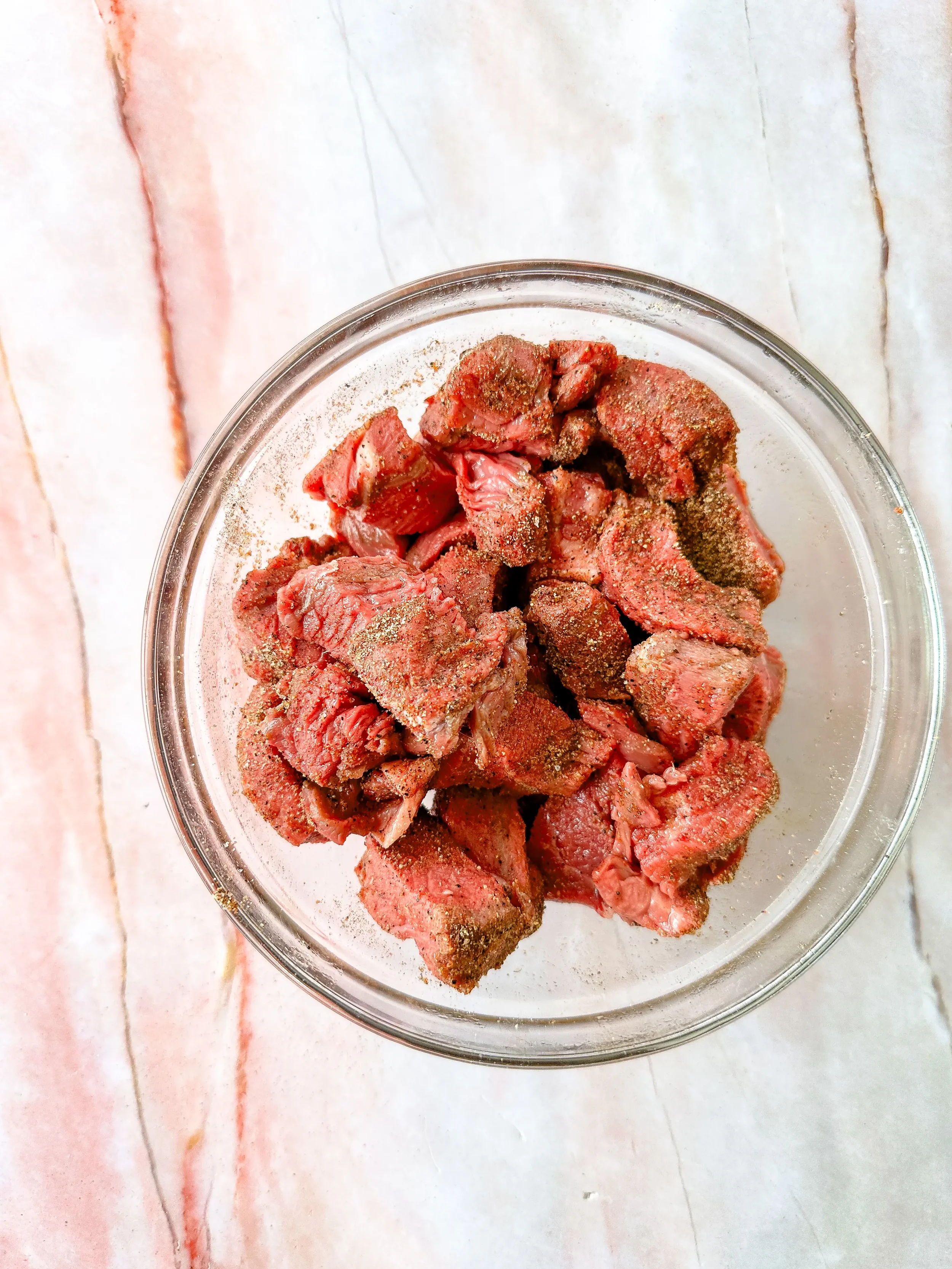 4. Toss the steak bites with olive oil, then coat them evenly with the spice mixture.