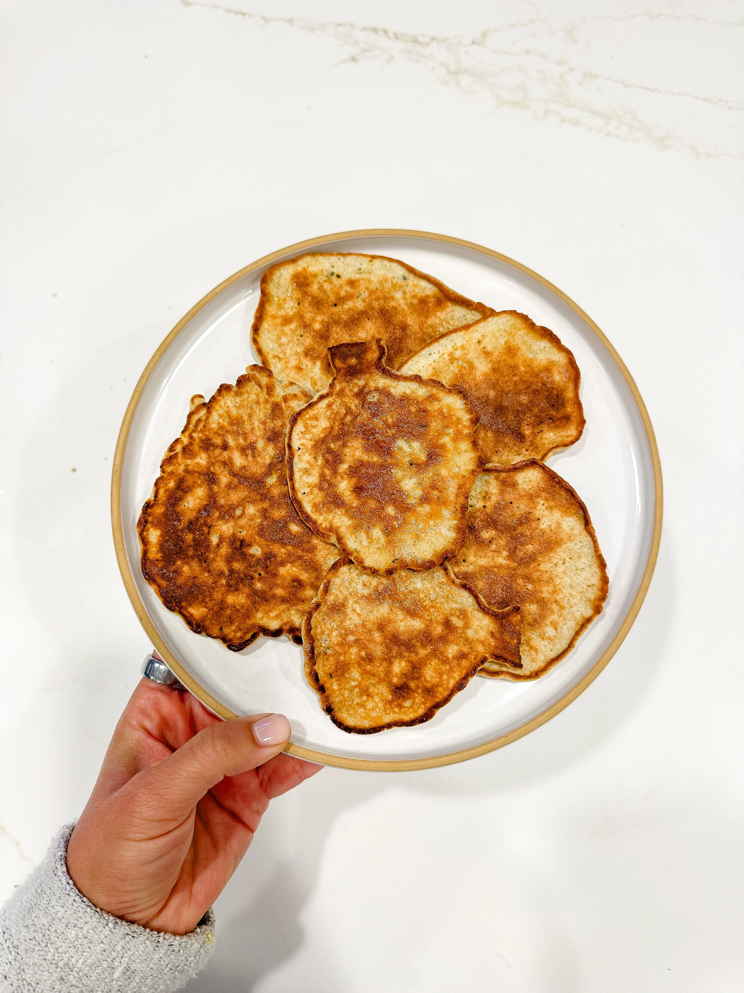 If I had to pick one recipe to make weekday breakfasts easier (and a "treat" for Olive), it would be this one. These 3-ingredient banana pancakes taste like fluffy diner pancakes but are packed with protein and fiber to keep everyone full. They’re naturally gluten-free too, which makes them a win all around.