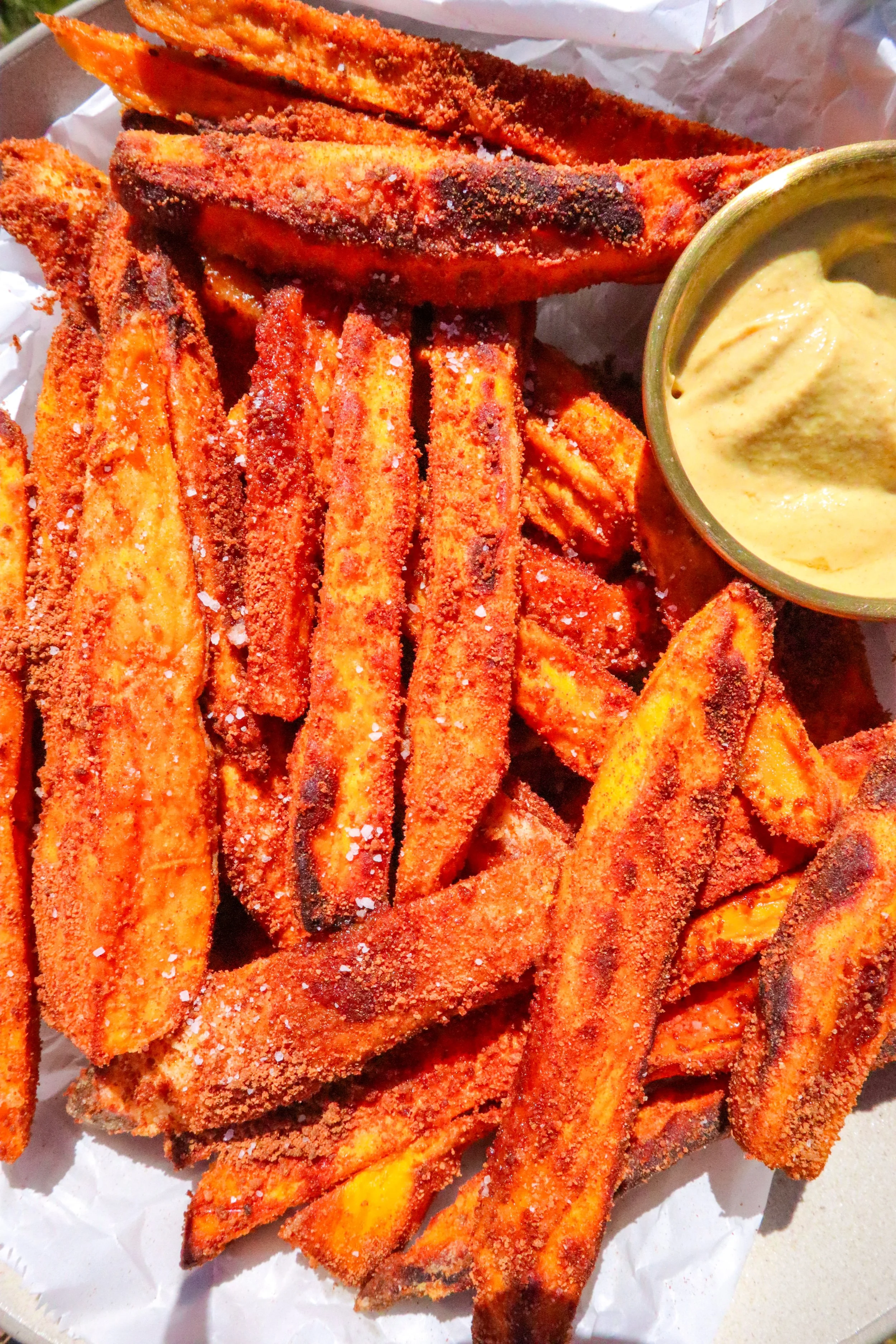 I love pairing them with something cool and creamy, like a simple honey yogurt dip or a touch of vanilla Greek yogurt. The contrast between warm, spiced fries and the chill of the dip is so satisfying.