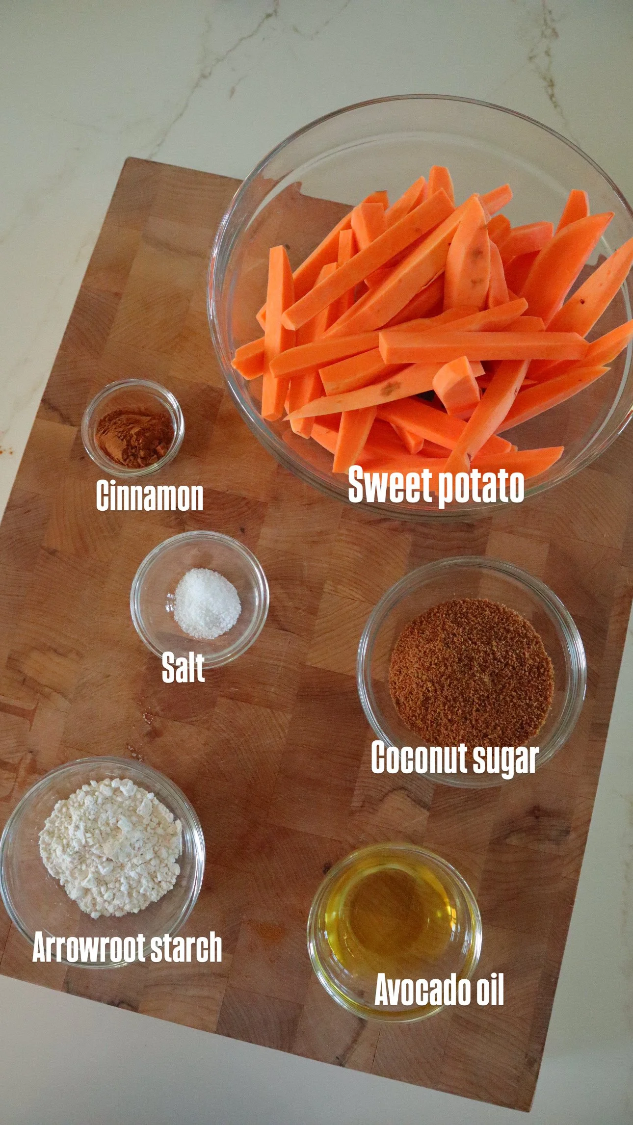 Here’s what goes into my Air Fryer Cinnamon Sugar Sweet Potato Fries: