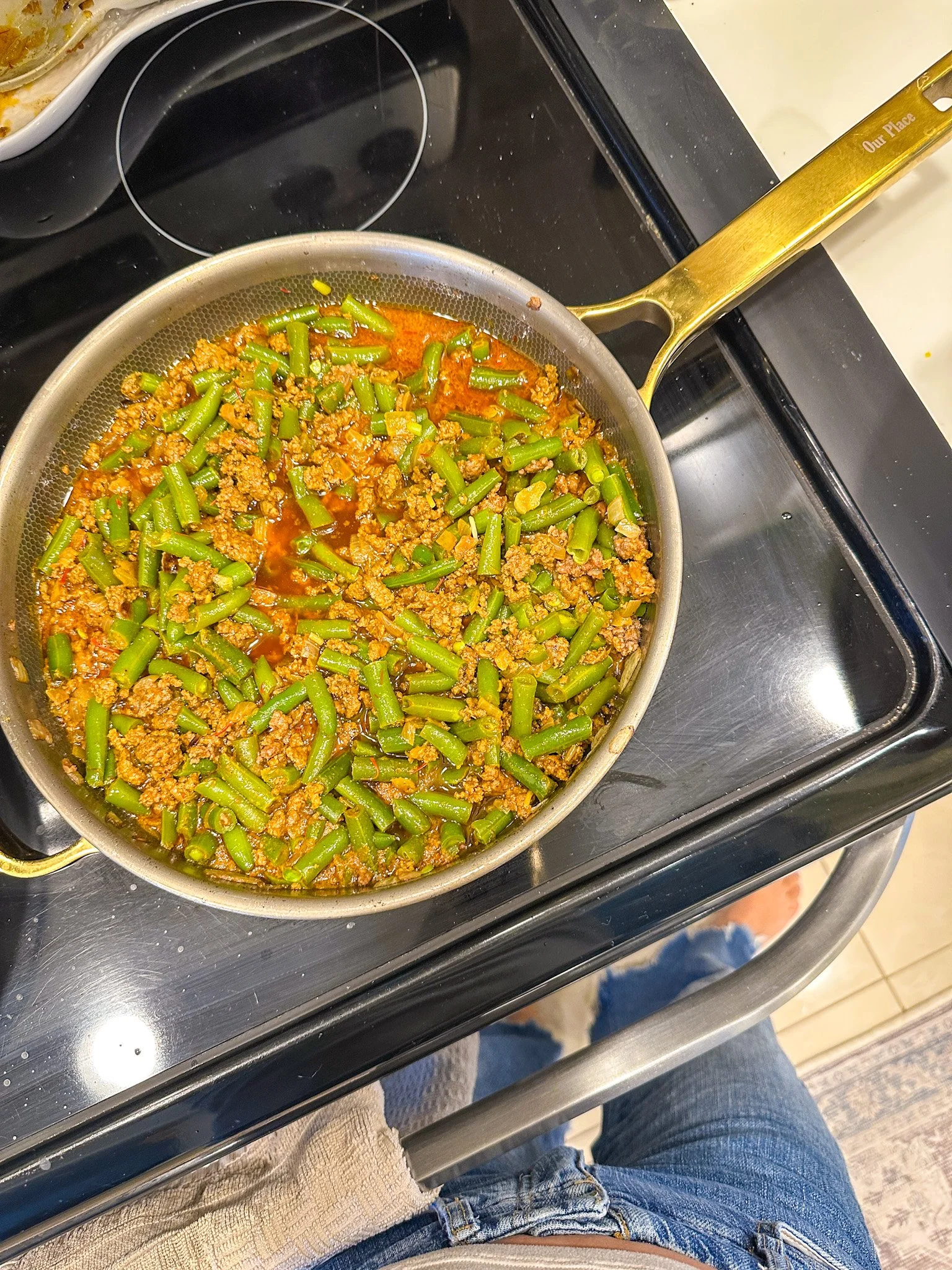 It is also oven-safe up to 450 degrees, so you can start cooking on the stovetop and finish in the oven without switching pans. I use it for everything from sautéing vegetables to finishing dishes like frittatas or baked pasta.