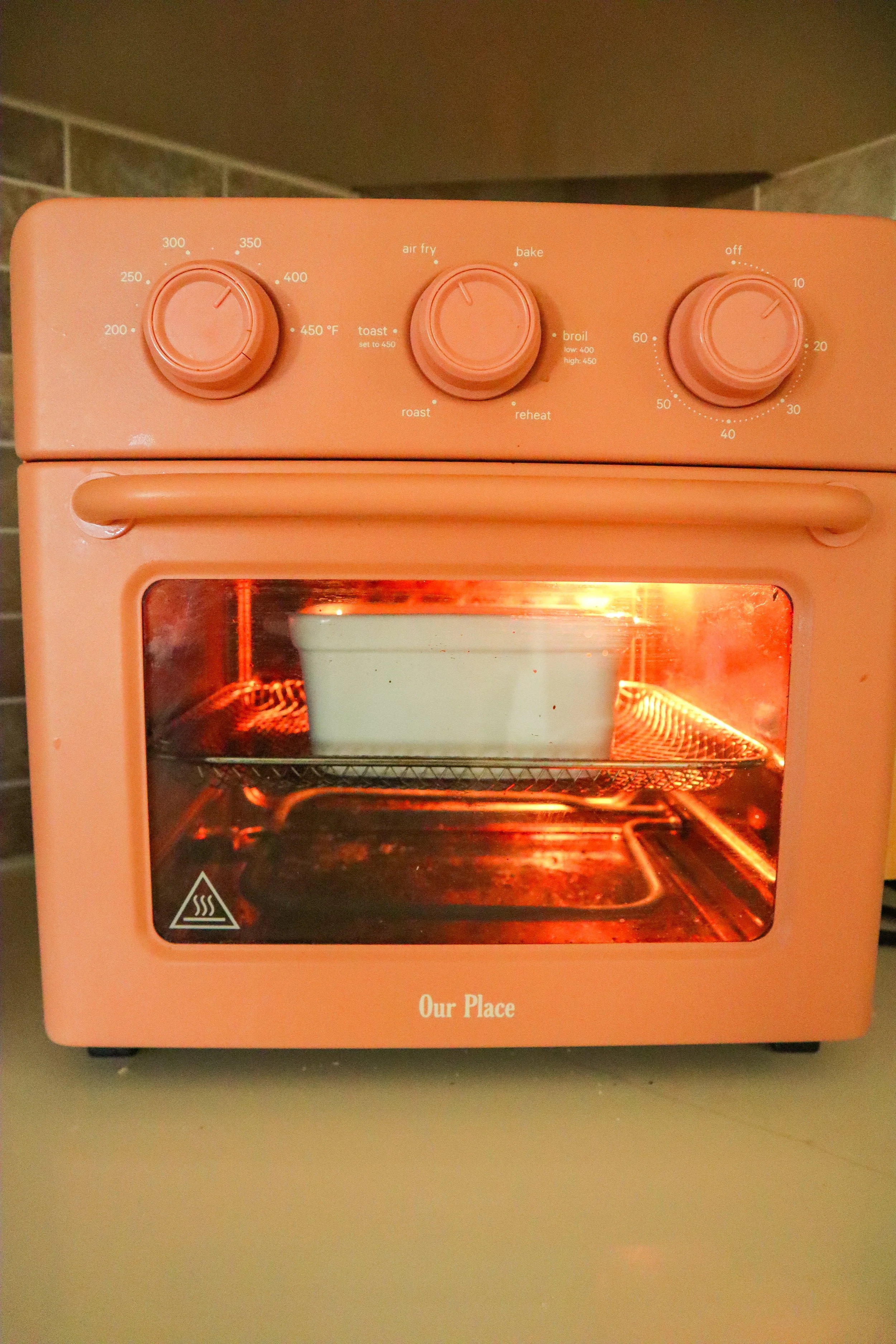 Make sure your ramekin or baking dish is oven-safe or fits in your air fryer. I use this one! The size is just right.