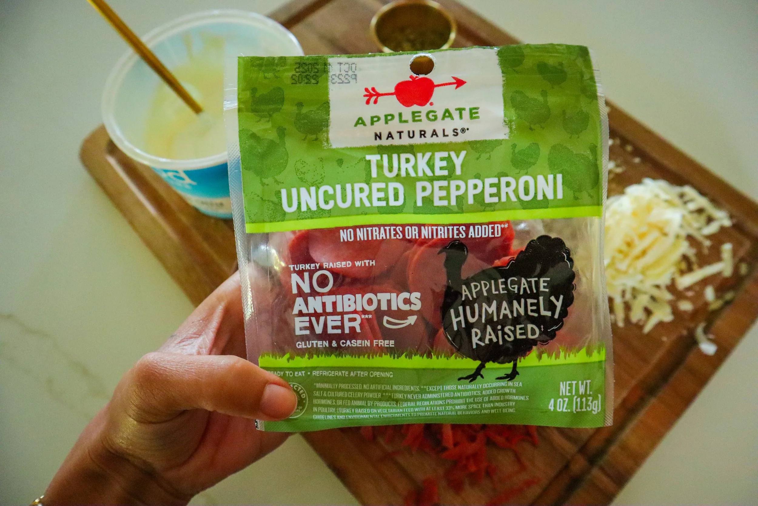 Just enough to give it that tomato flavor without making the dip too thin.½ cup chopped turkey pepperoni