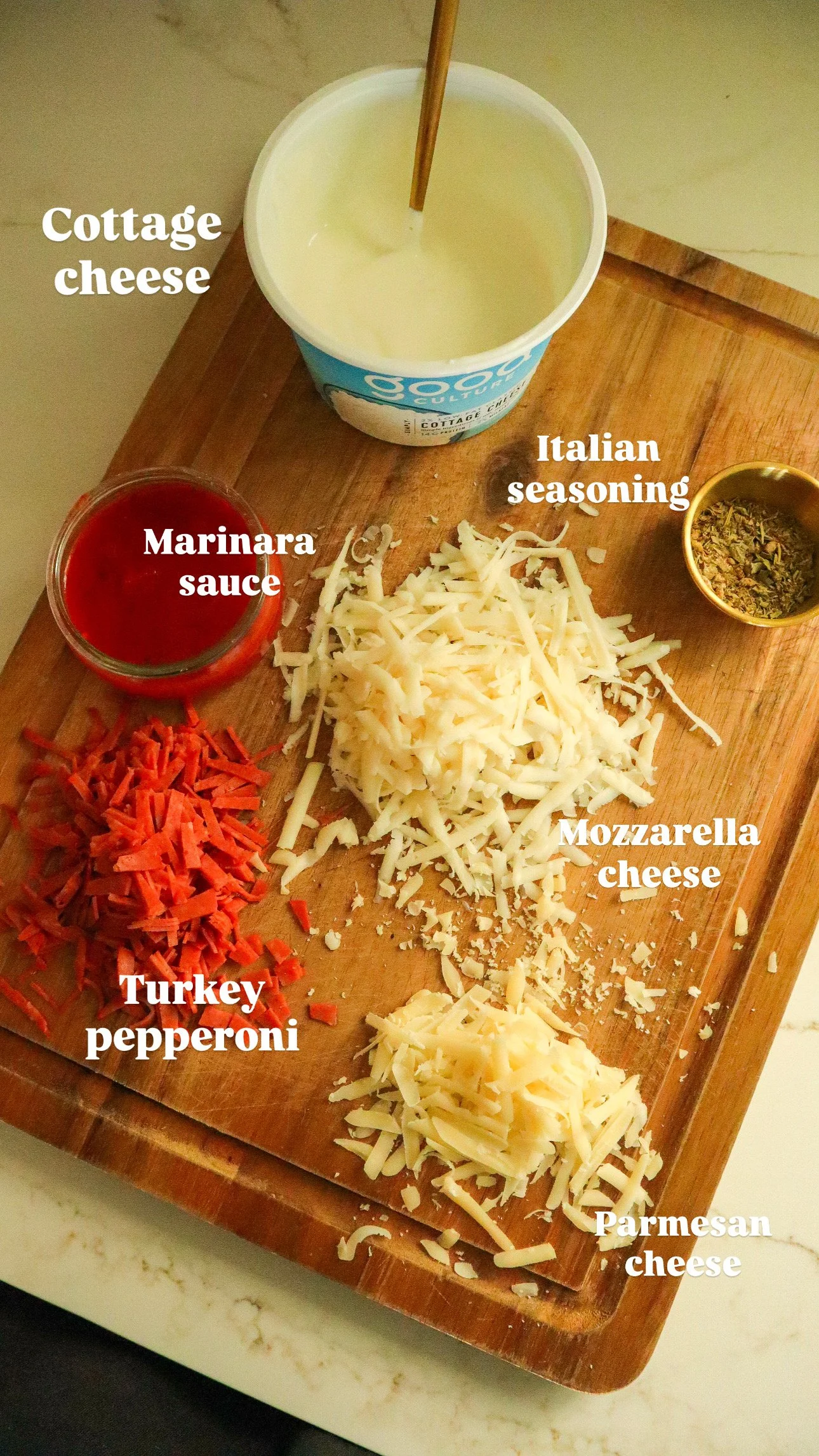 Simple ingredients: No complicated grocery runs here, just everyday staples like cottage cheese, mozzarella, and turkey pepperoni.